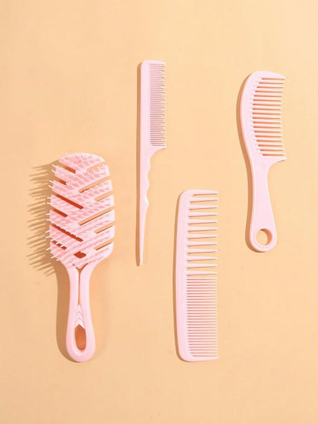طقم فرشاة تصفيف شعر منحني مع 3 أمشاط صالون، باللون الوردي